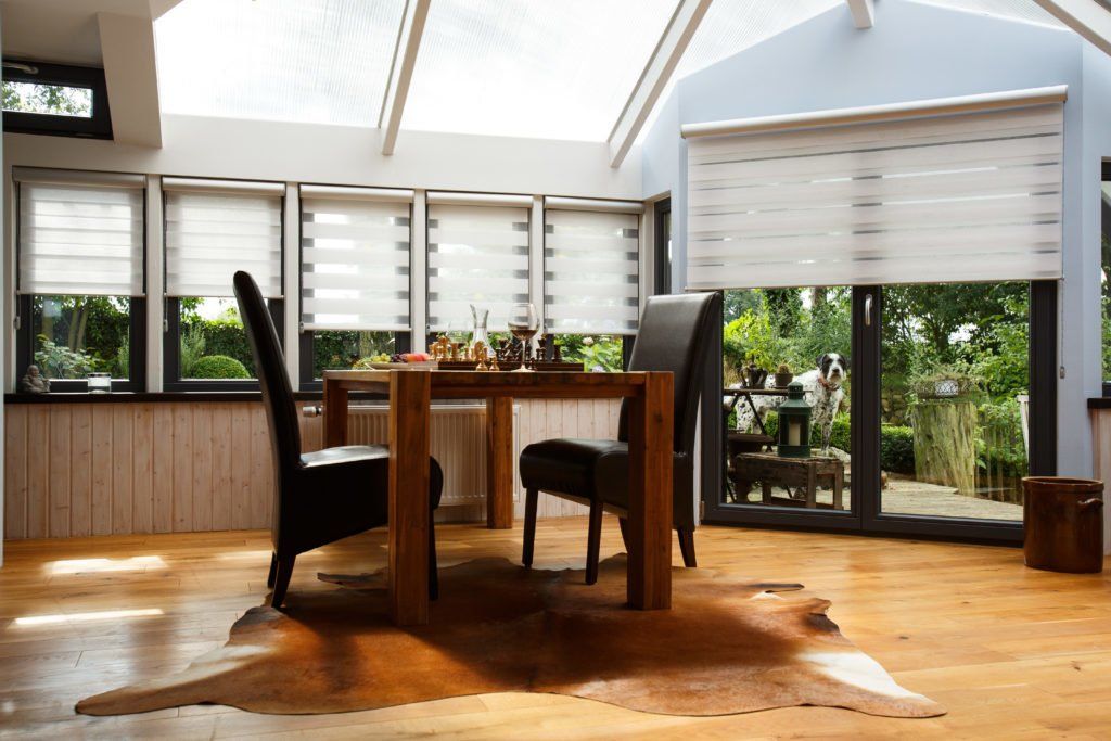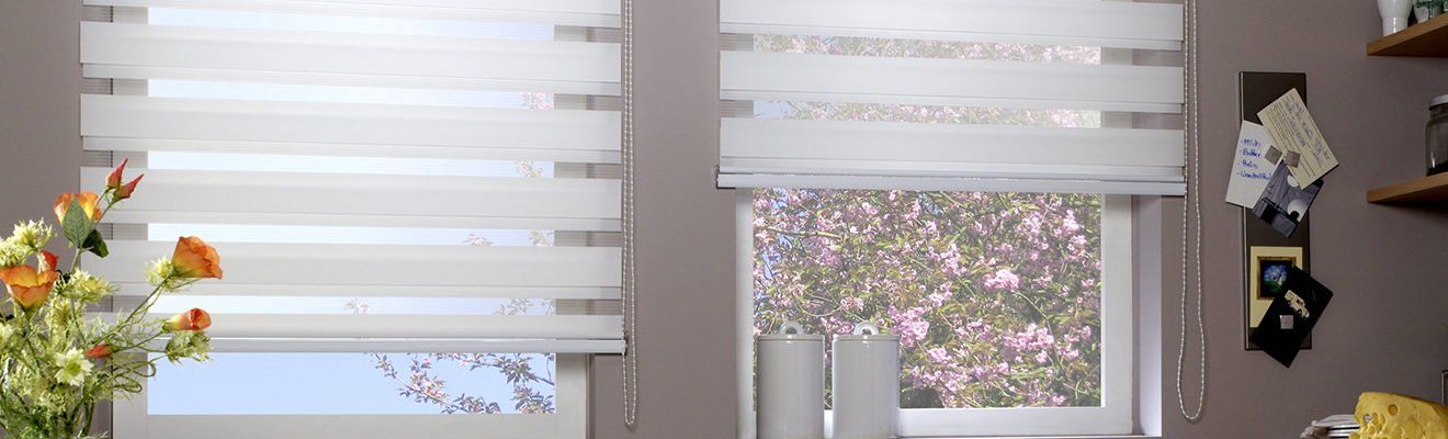 Transparent und flexibel lassen sich Sicht- und Sonnenschutz beim Doppelrollo steuern. Der sogenannte Doppelrollo - Effekt entsteht durch abwechselnde transparente und dicht gewebten Stoffen. Es lässt sich problemlos in die gewünschte Wunschposition einstellen.